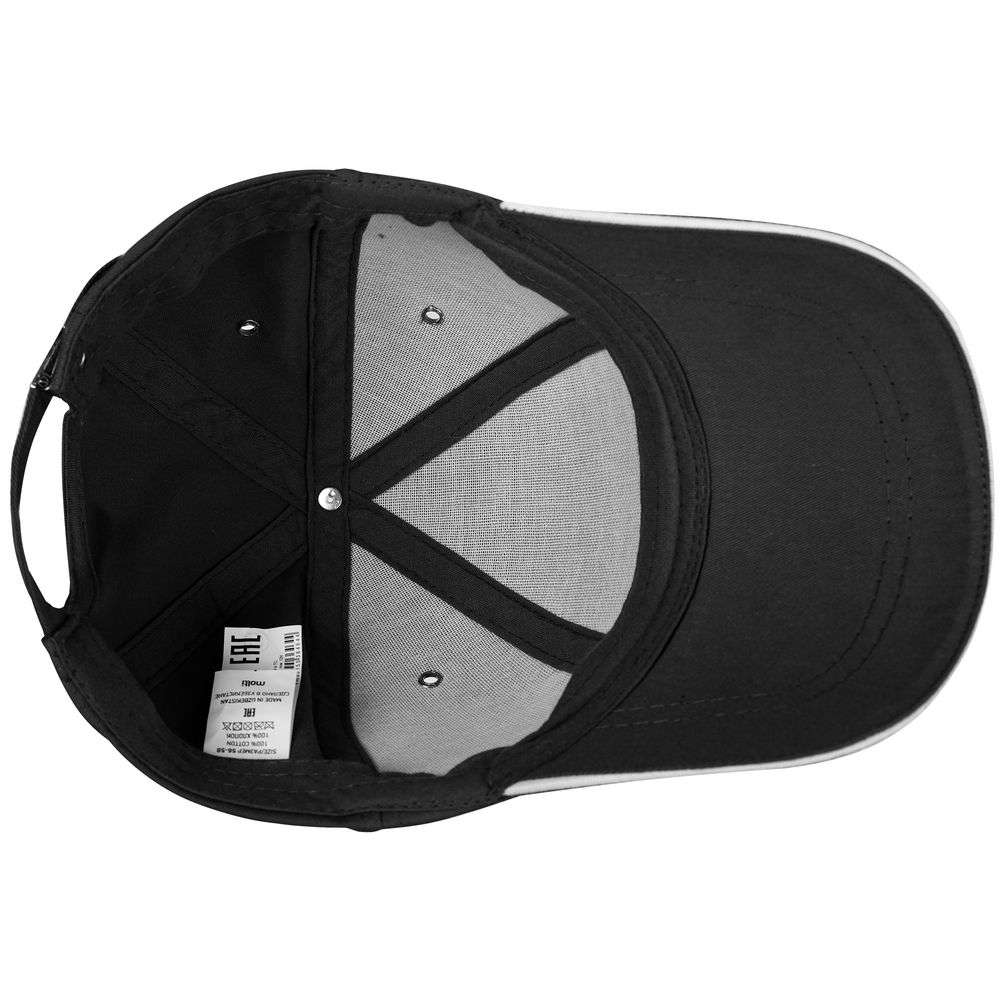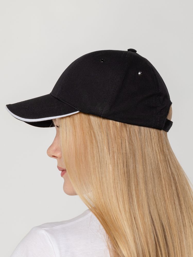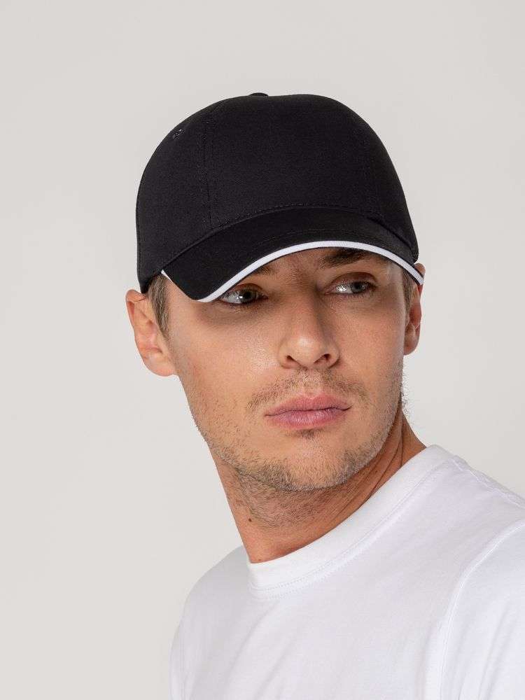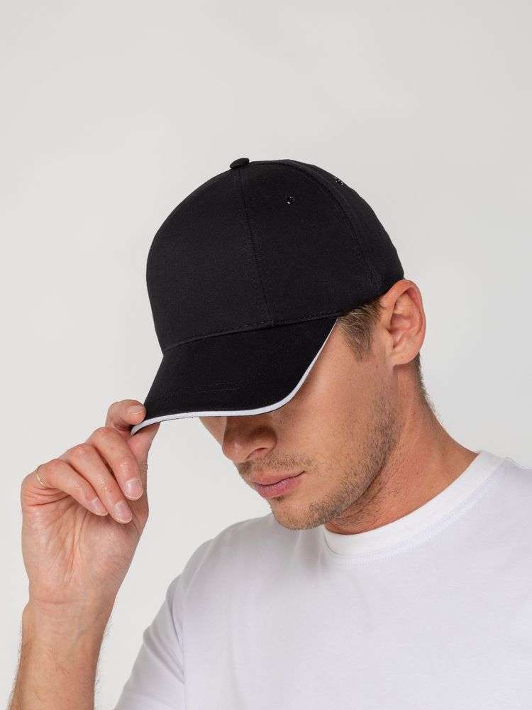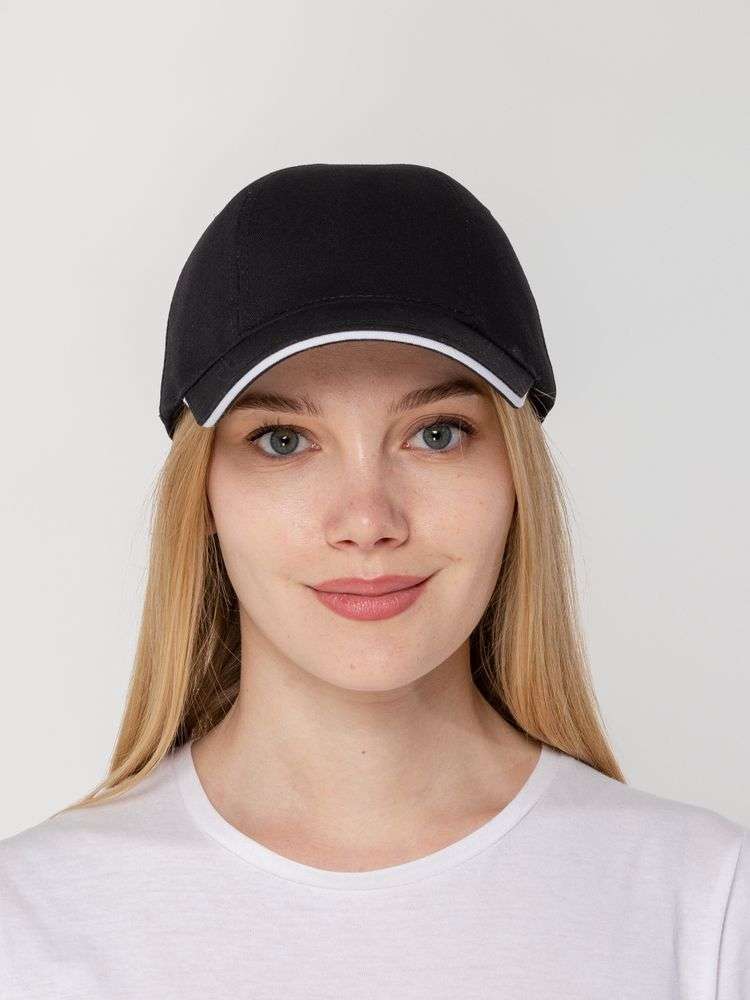 Бейсболка Canopy, черная с белым кантом