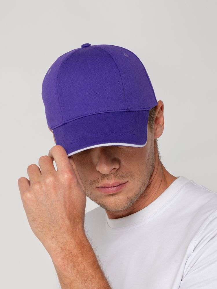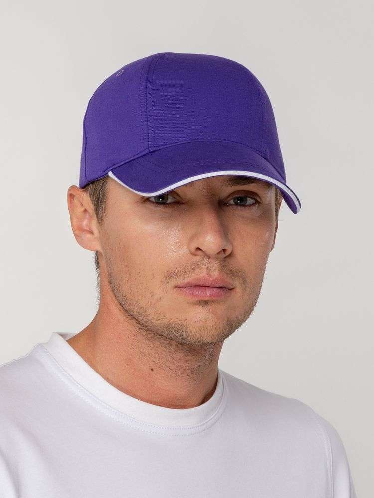 Бейсболка Canopy, фиолетовая с белым кантом