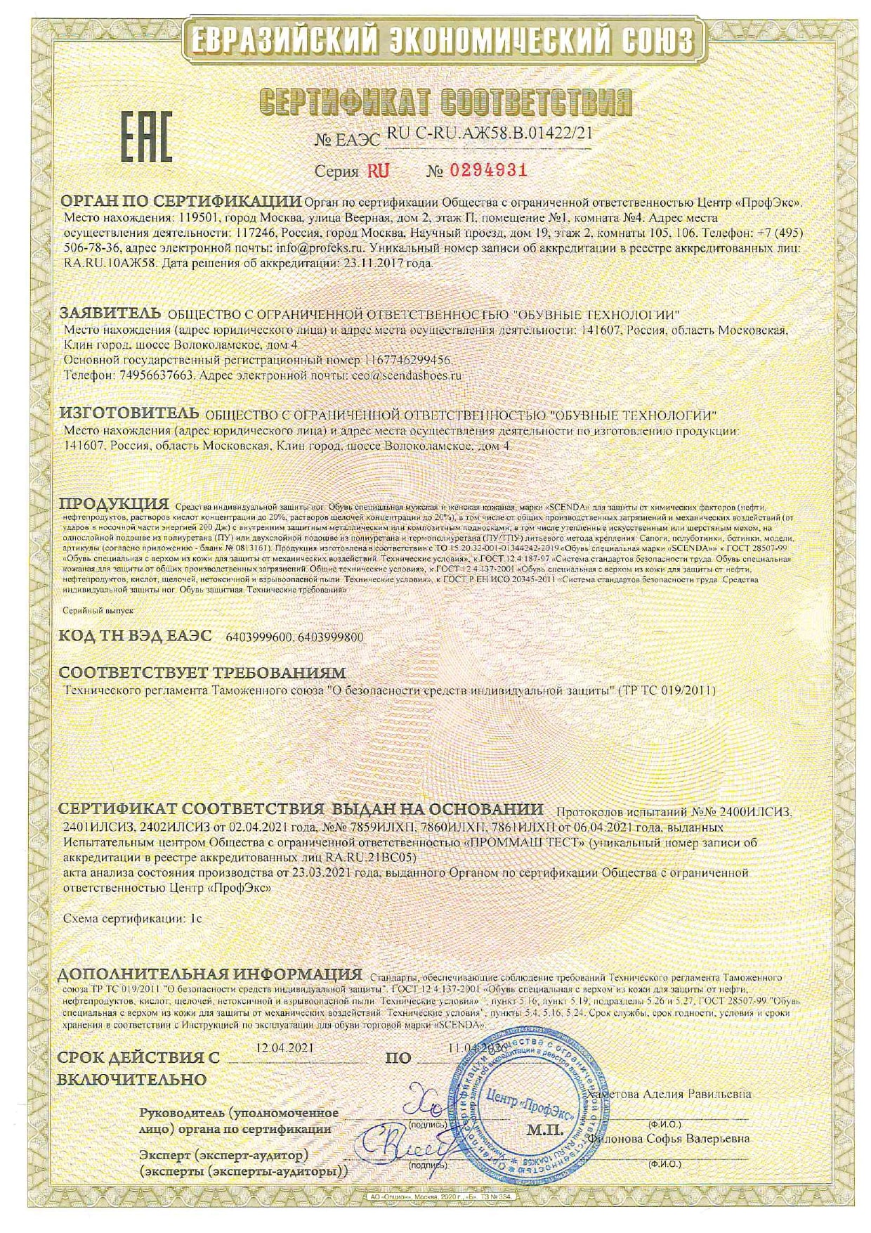 - Нормативно техническая документация: ТР ТС 019/2011, ГОСТ 12.4.187-97, ГОСТ 28507-99, ГОСТ 12.4.137-2001