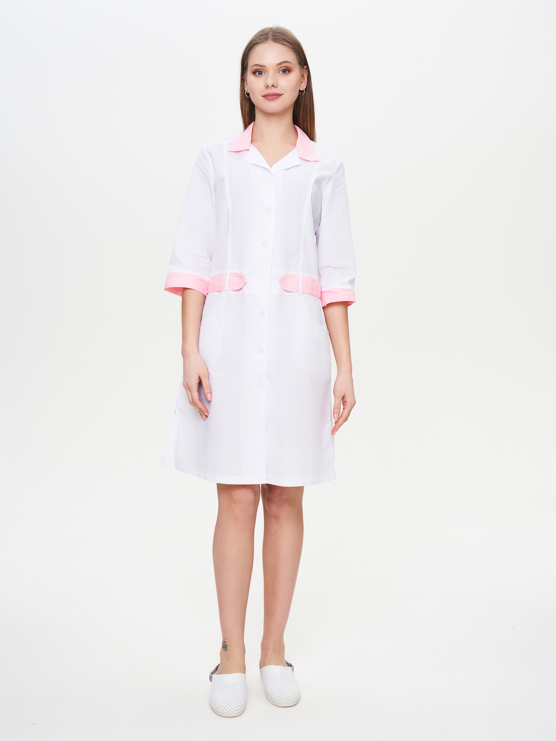 Халат женский "Фарма" белый с розовым СКИДКА 20%