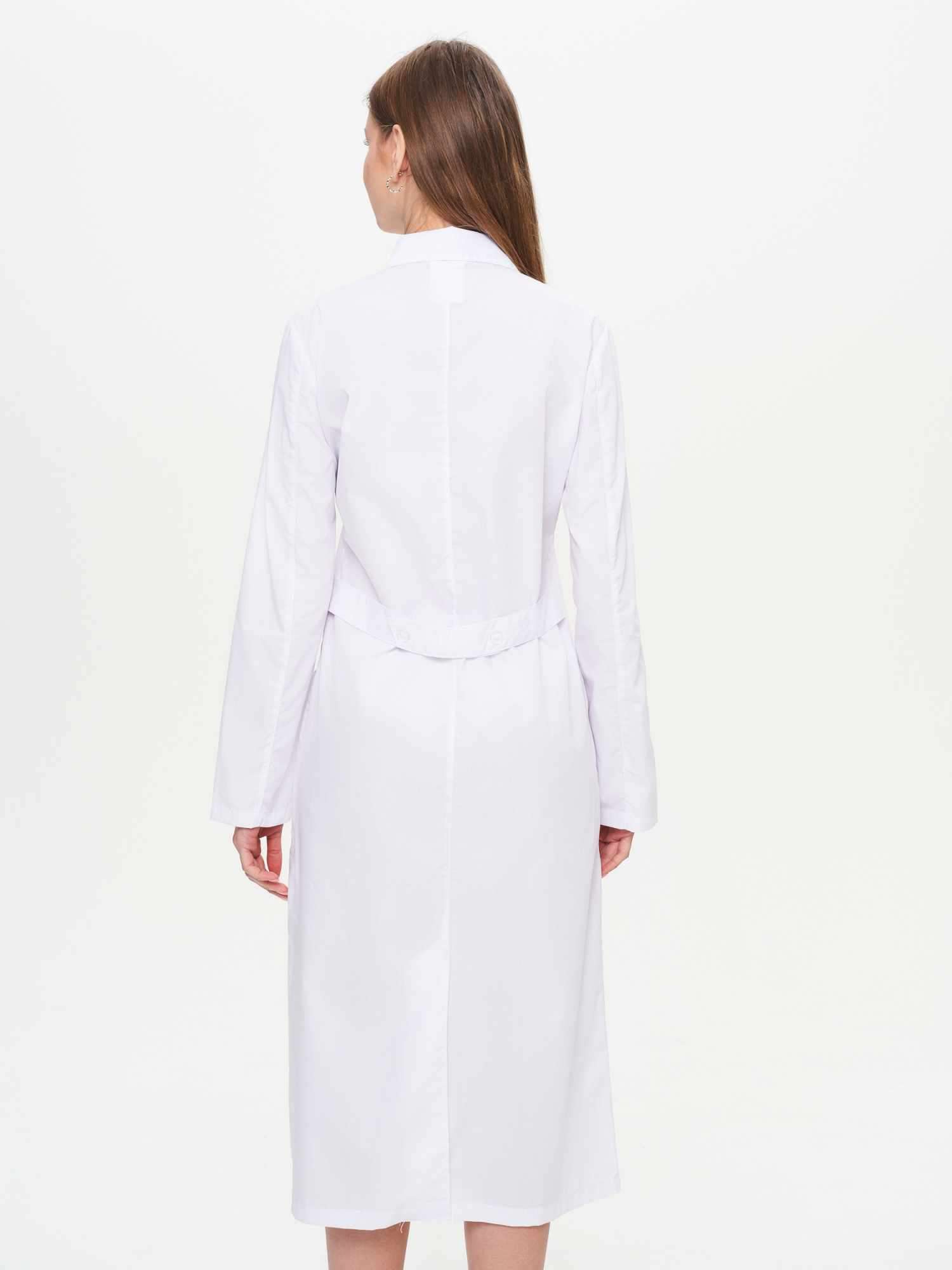 - Объем по талии регулируется хлястиком на пуговицах.