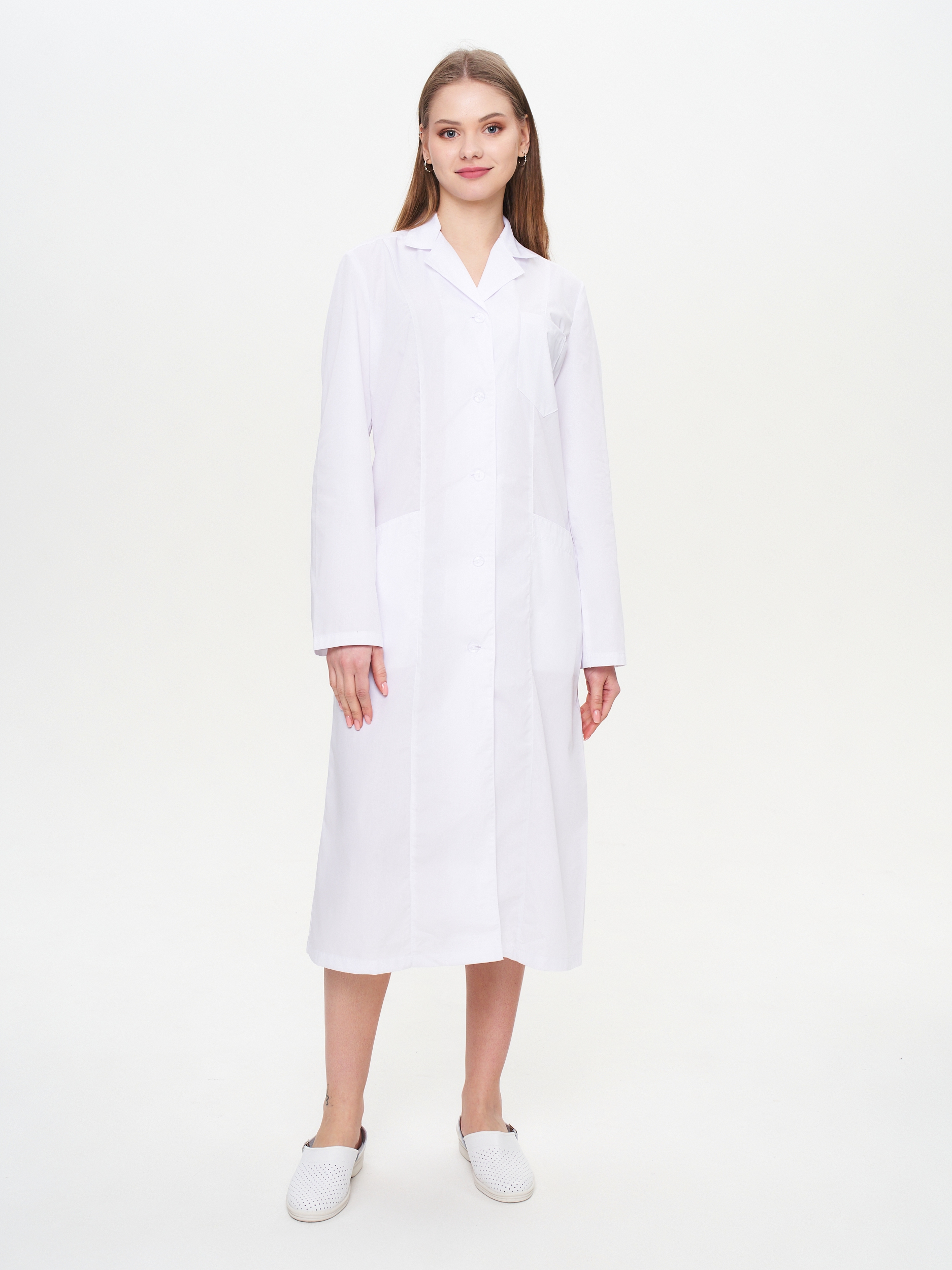 - Силуэт: полуприлегающий, с центральной застежкой на пуговицы.