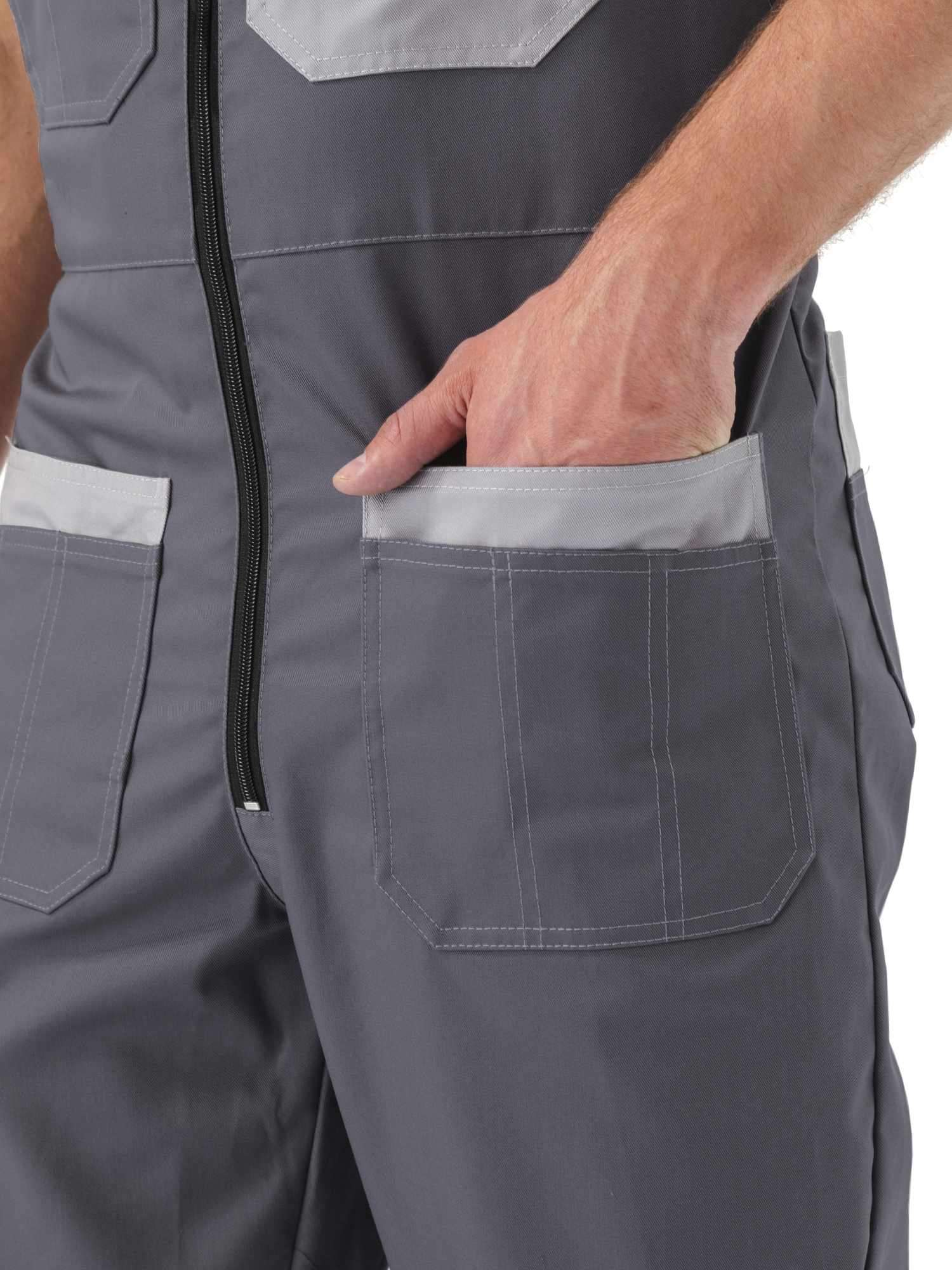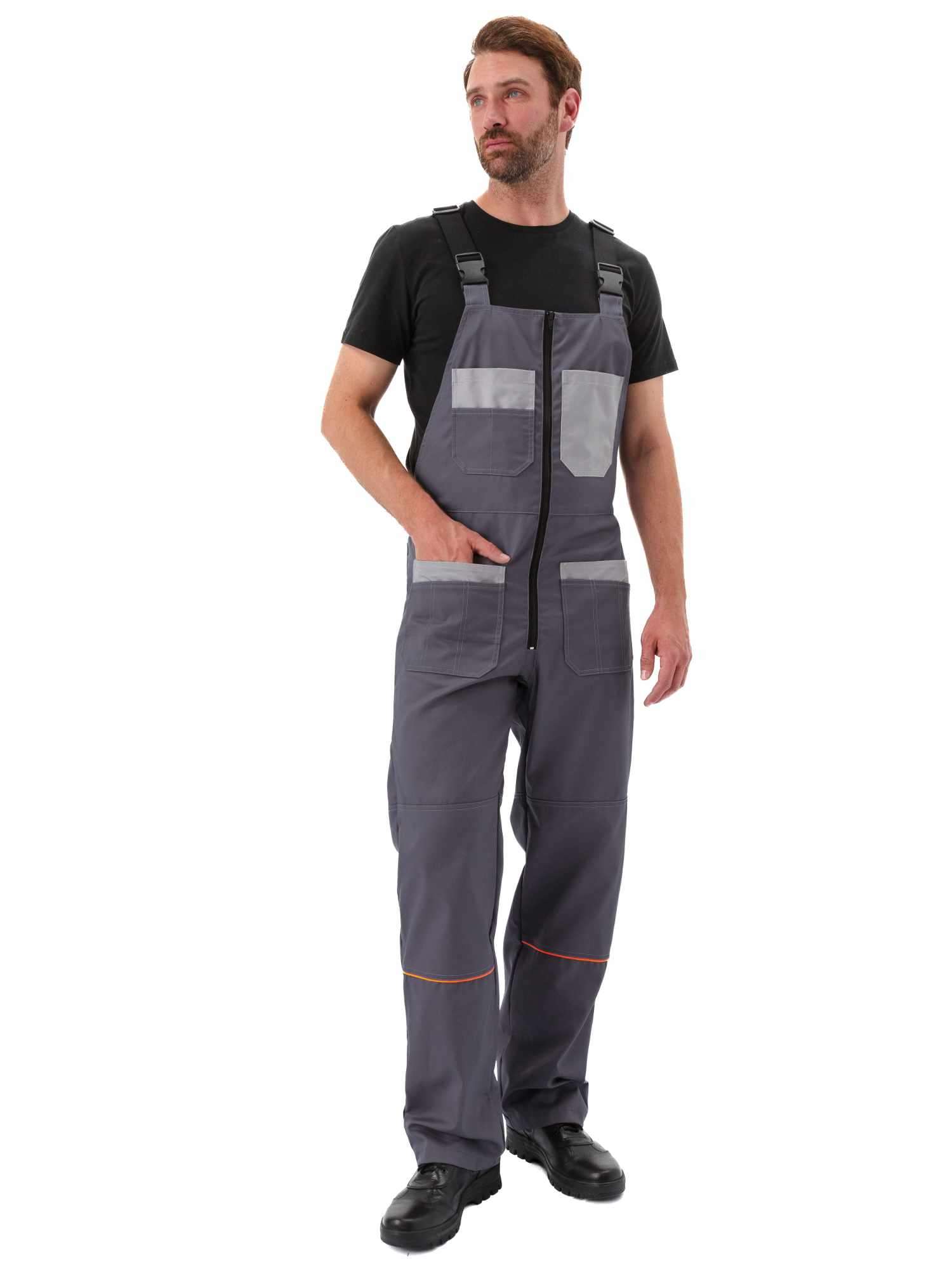 - Полукомбинезон прямой, с центральной застёжкой на молнии;