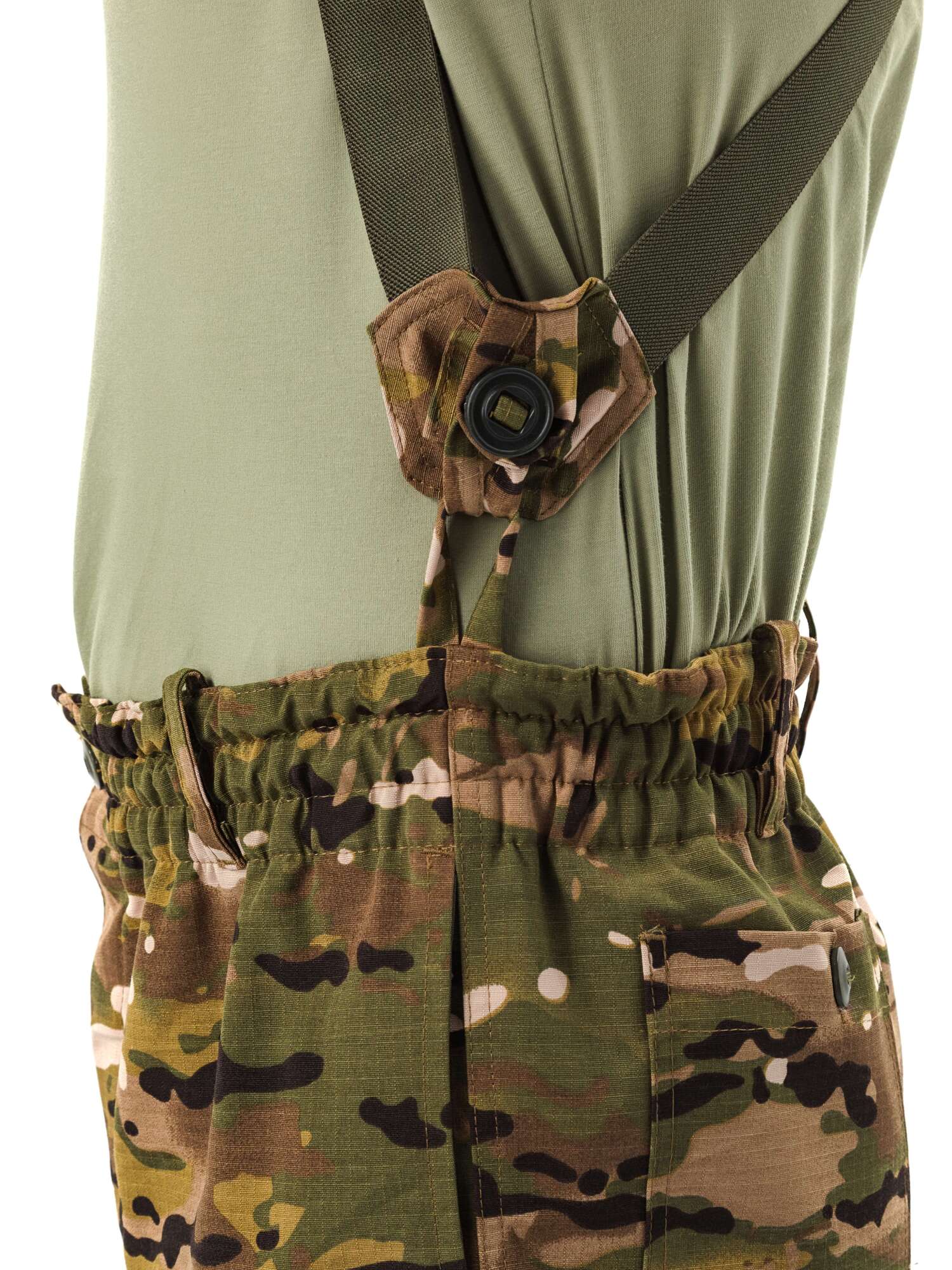 - съемные подтяжки из помочной резинки крепятся по бокам пояса брюк с помощью пуговиц