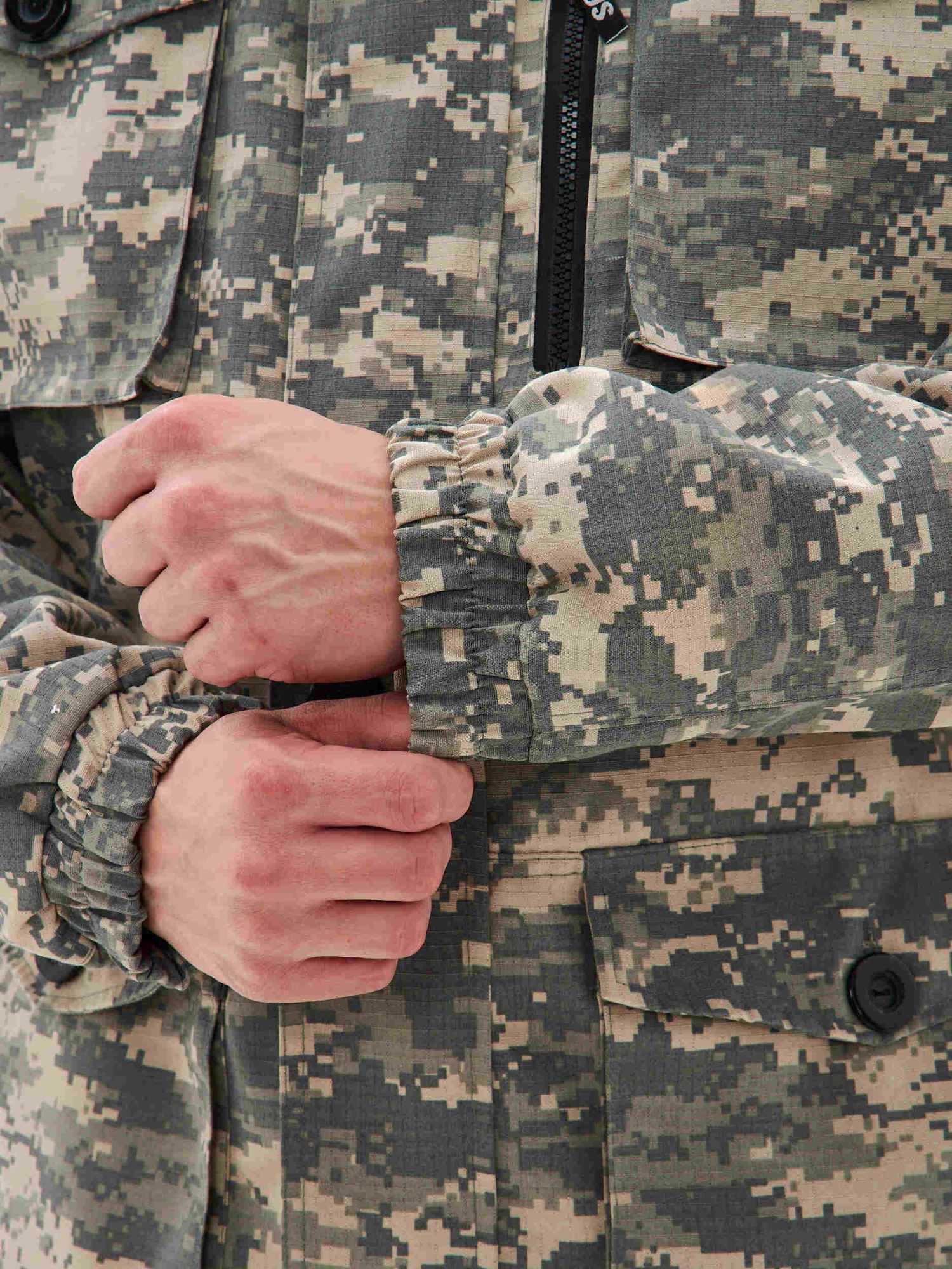 - Ткань основная: смесовая РИП-СТОП (80% полиэфир, 20% хлопок), плотность 220 г/м2, ВО пропитка