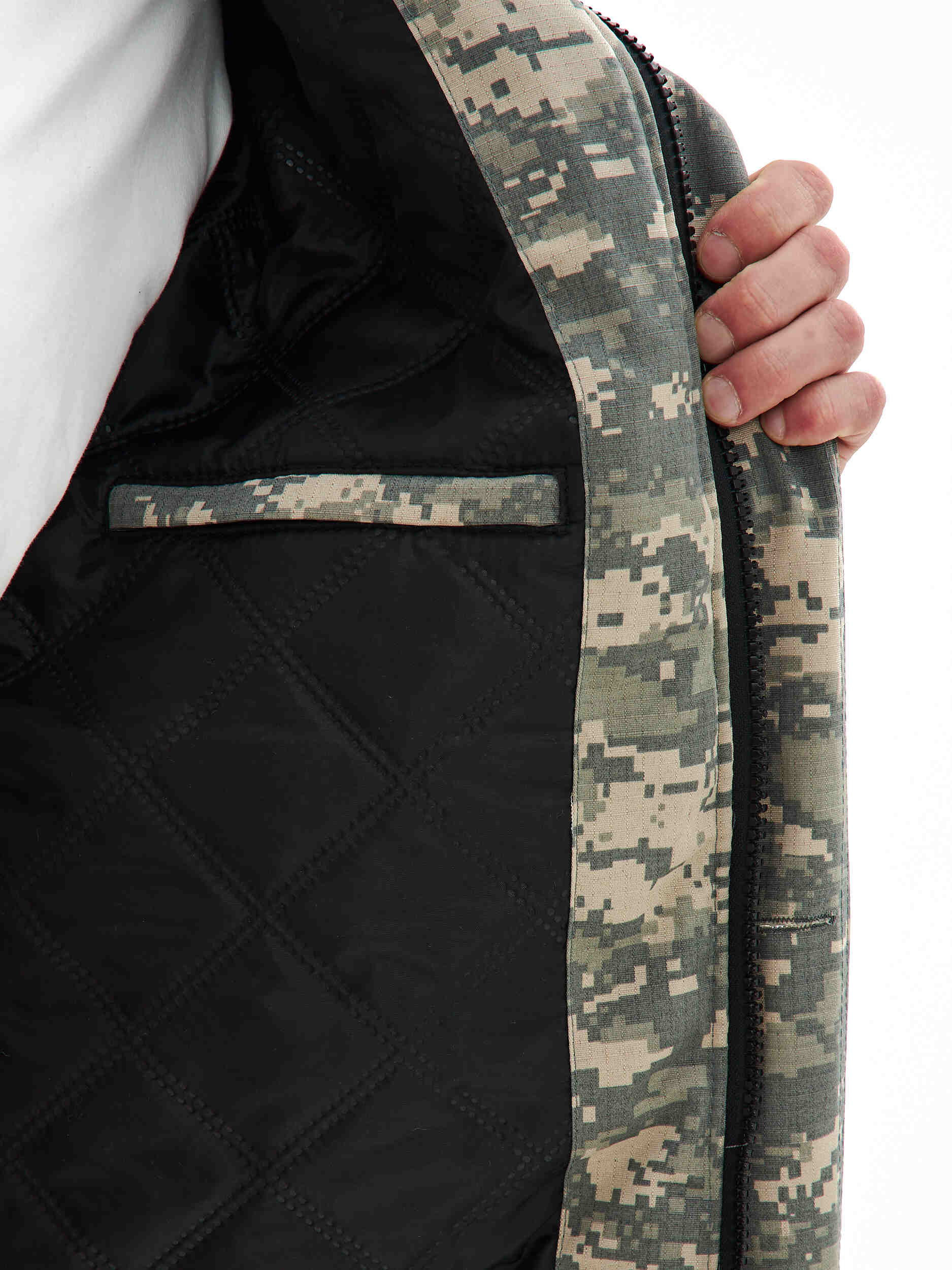 • на подкладке левой полочки внутренний прорезной карман на молнии