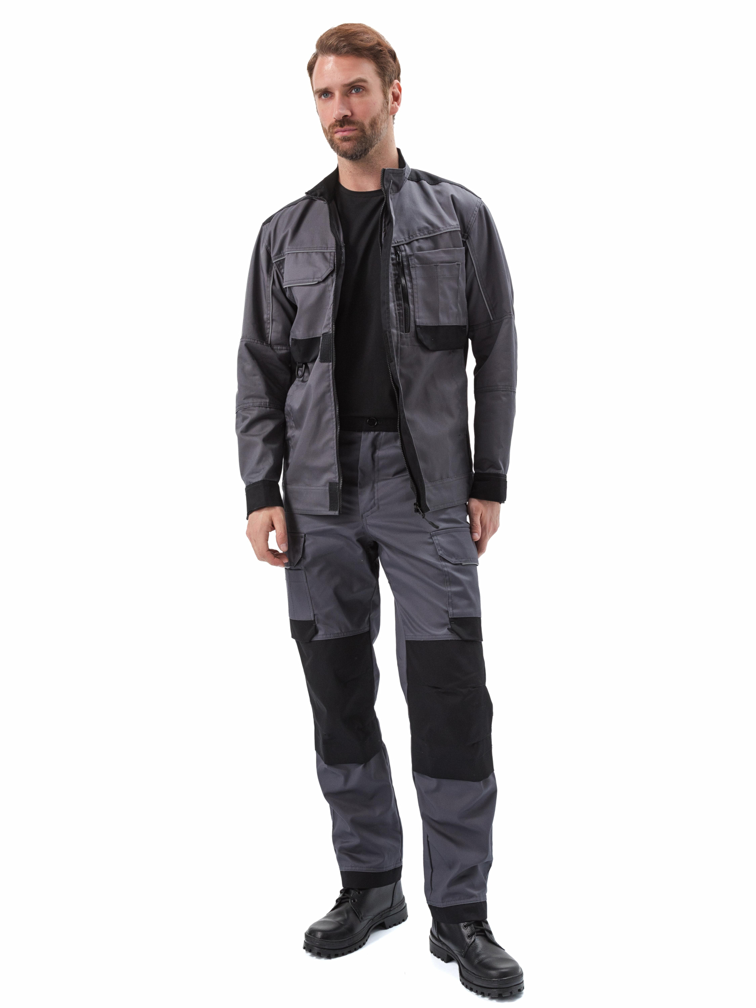 - Наколенники из отделочной ткани для установки амортизационных вкладышей (вкладыши приобретаются отдельно). Вход в карман застегивается на потайную липучку;