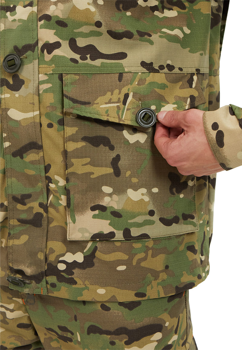 - Ткань основная: смесовая РИП-СТОП (65% полиэфир, 35% хлопок), плотность 220 г/м2, ВО пропитка