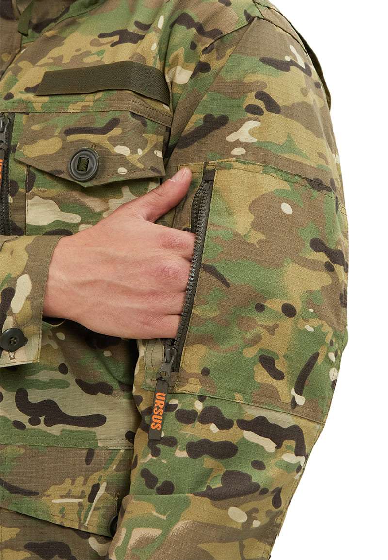 - На левом рукаве расположен накладной карман со входом на молнию