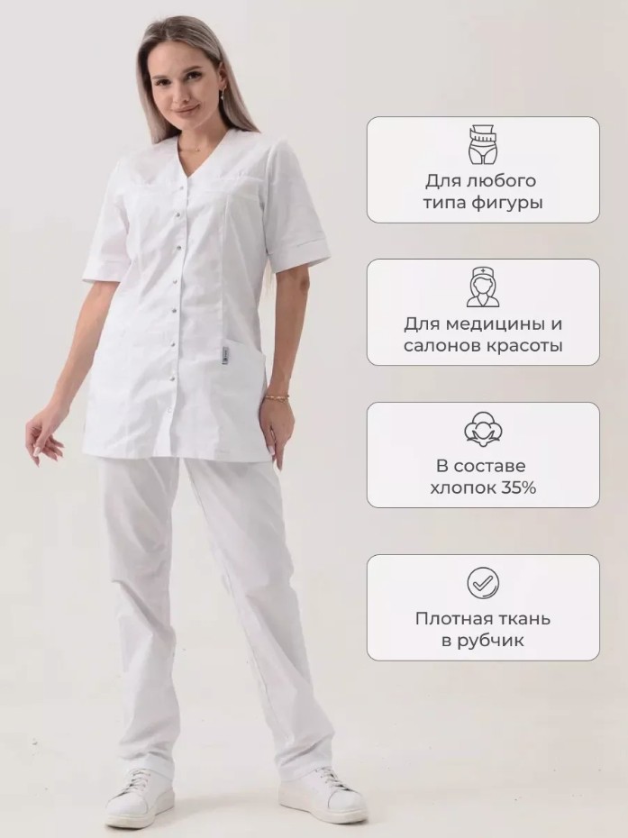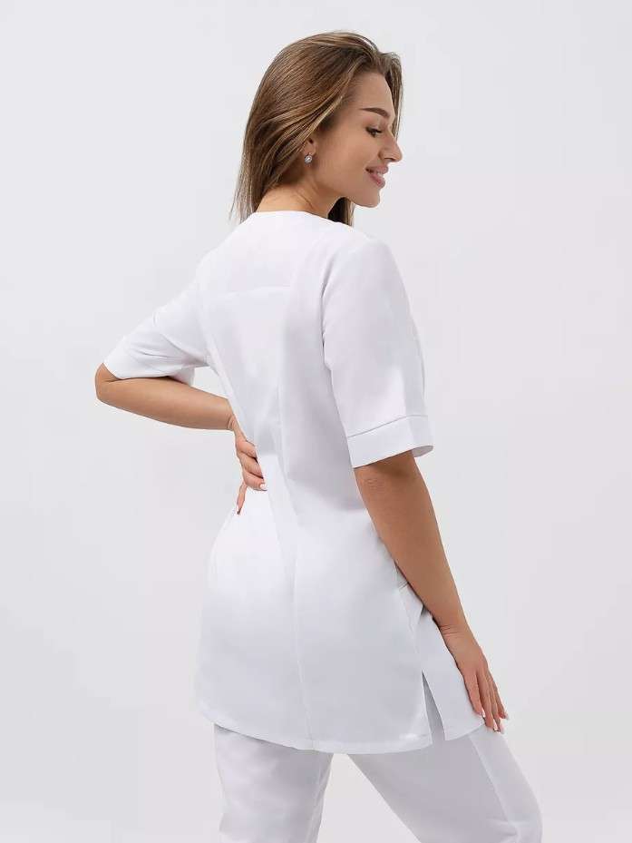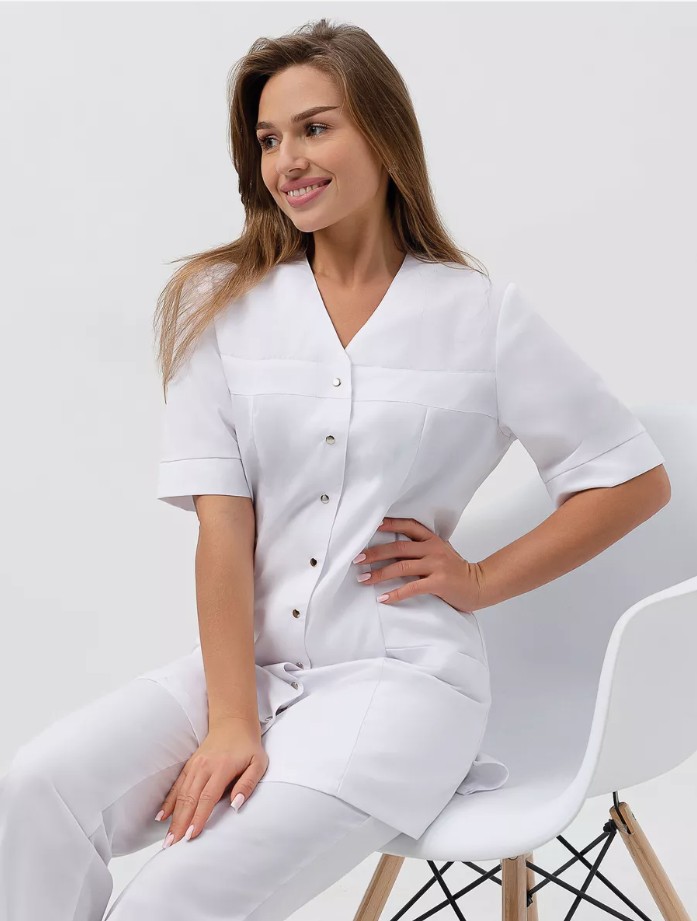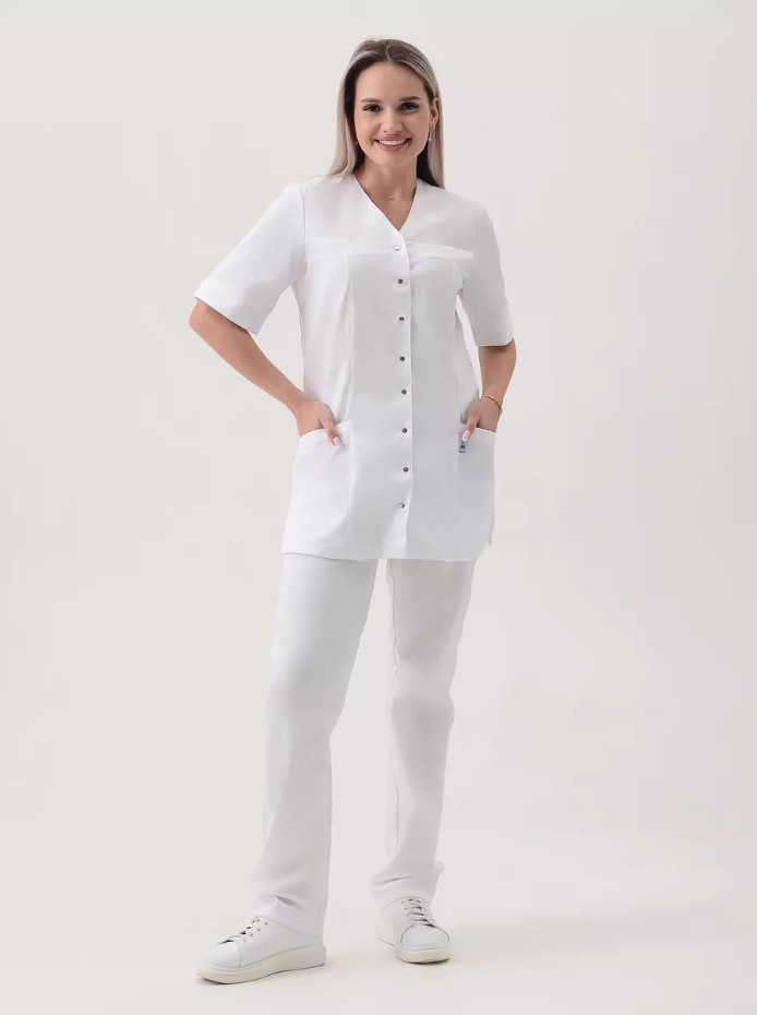 Стиль, комфорт и функциональность - вот три основных составляющих женских медицинских костюмов. Наша униформа создана специально для профессионалов, работающих в сфере здравоохранения, красоты и гигиены. Костюм идеально подойдет для врачей, медсестер, массажистов, косметологов, парикмахеров, поваров и многих других специалистов, которые ценят качество и стиль. Ключевой особенностью наших мед костюмов является их удобство. Мы используем высококачественные материалы, которые обеспечивают приятное ощущение на коже и максимальную свободу движений. Наш костюм выполнен из плотной долговечной ткани "Твил" (хлопок 50%, полиэстер 50%), плотностью 150 гр/м2. Комфортное расположение карманов, поможет даже в самую сложную ситуацию. Костюмы изготовлены с учетом всех требований к специальной одежде и обладают высокой износостойкостью. Костюм с прямыми брюками и резинкой в поясе обеспечит комфорт при длительных рабочих сменах. Блуза на кнопках и клепками с коротким рукавом и V-образным вырезом придаст всему образу женственности и элегантности. Приталенная форма и удлиненная рубашка подчеркнут достоинства фигуры и создадут успокаивающий нежный образ. Не менее важно, что наши костюмы легко стираются и не требуют особого ухода. Они устойчивы к пятнам и сохраняют свежий внешний вид даже после многократной стирки. Это очень важно для специалистов, работающих в салонах красоты, гостиницах, больницах, клиниках и даже в скорой помощи. Они подчеркнут вашу уникальность и помогут создать неповторимый образ бровиста, бьюти-мастера, грумера, косметолога, медсестры, парикмахера, педикюра, маникюра или повара.