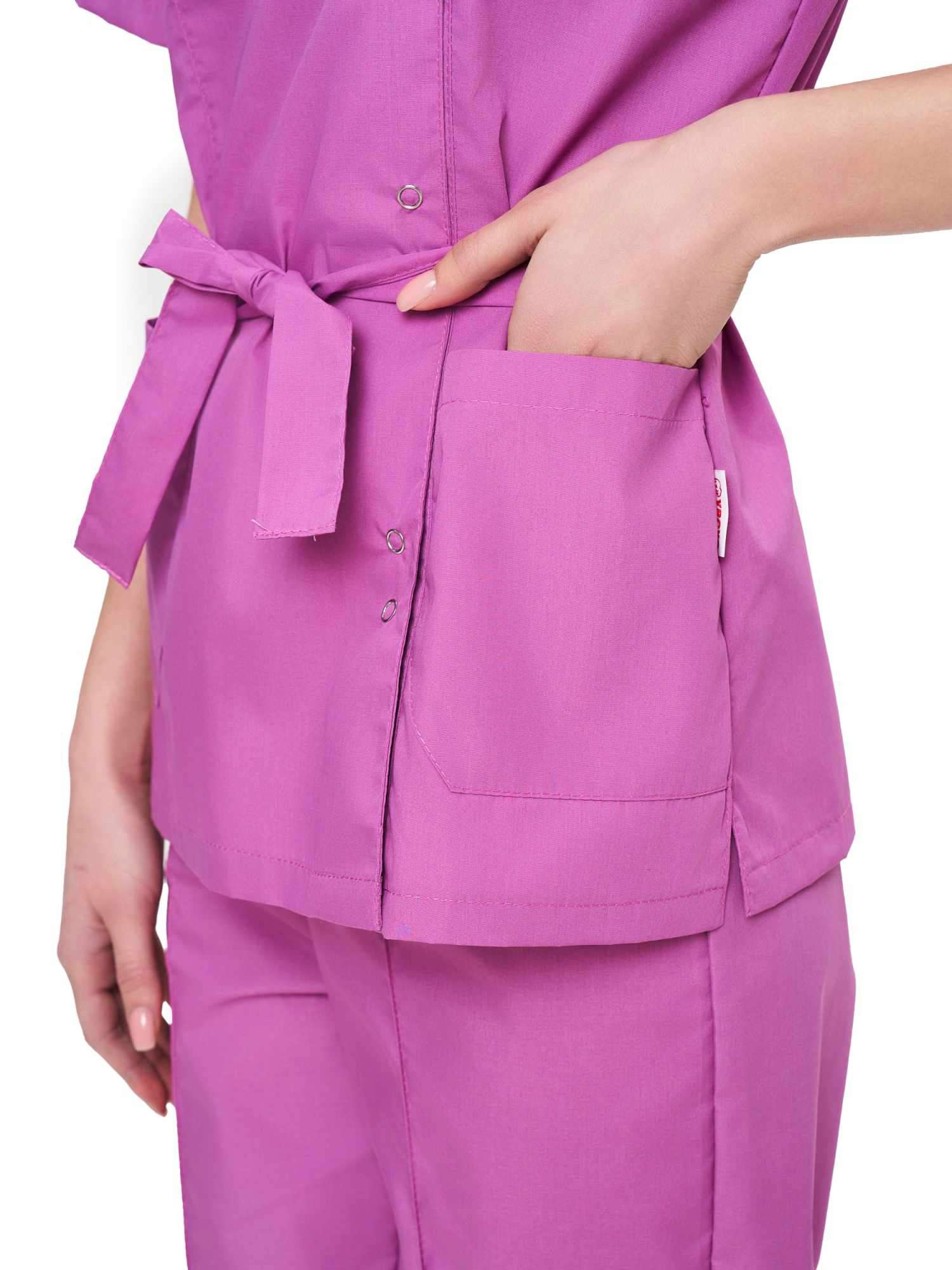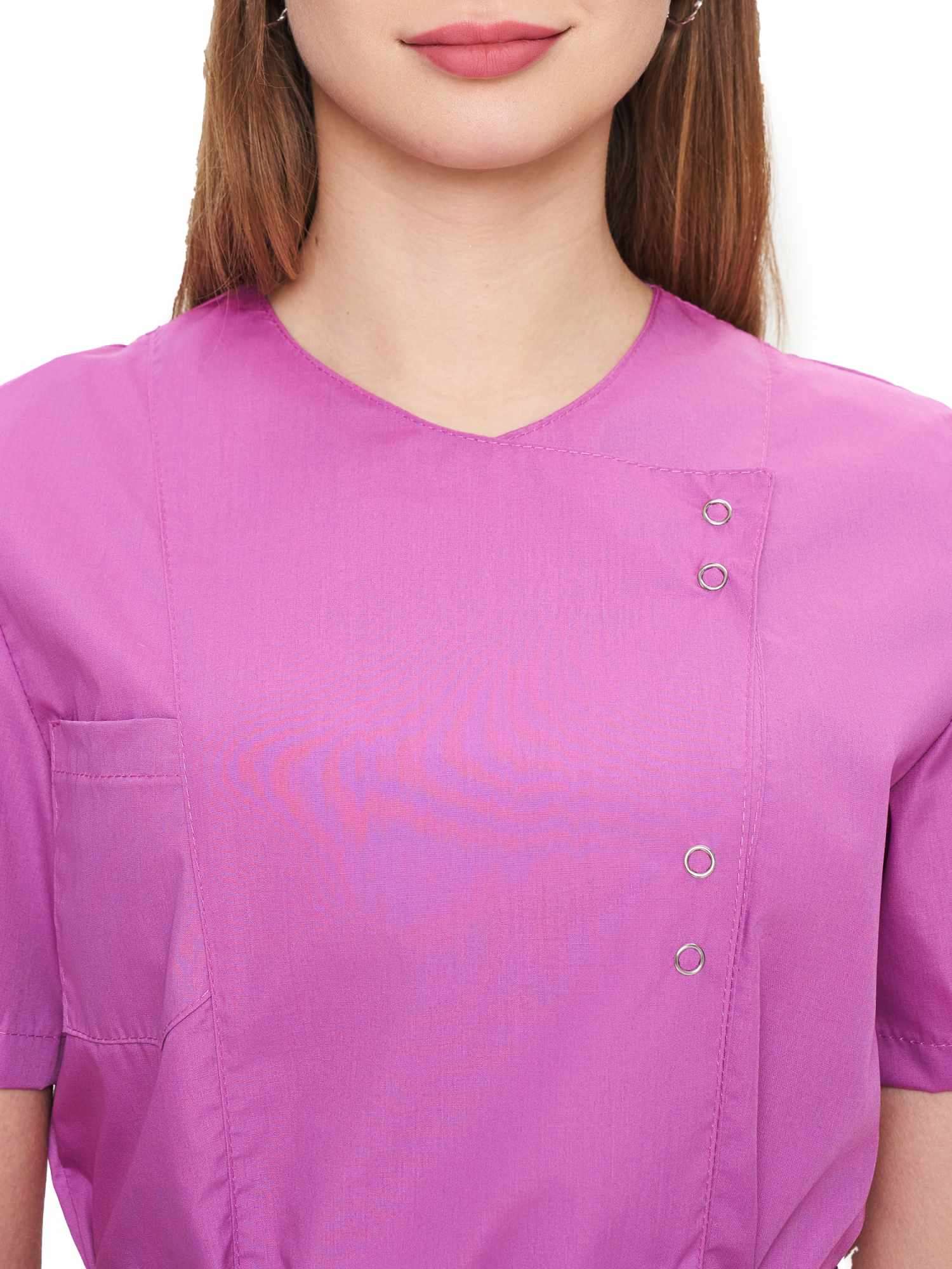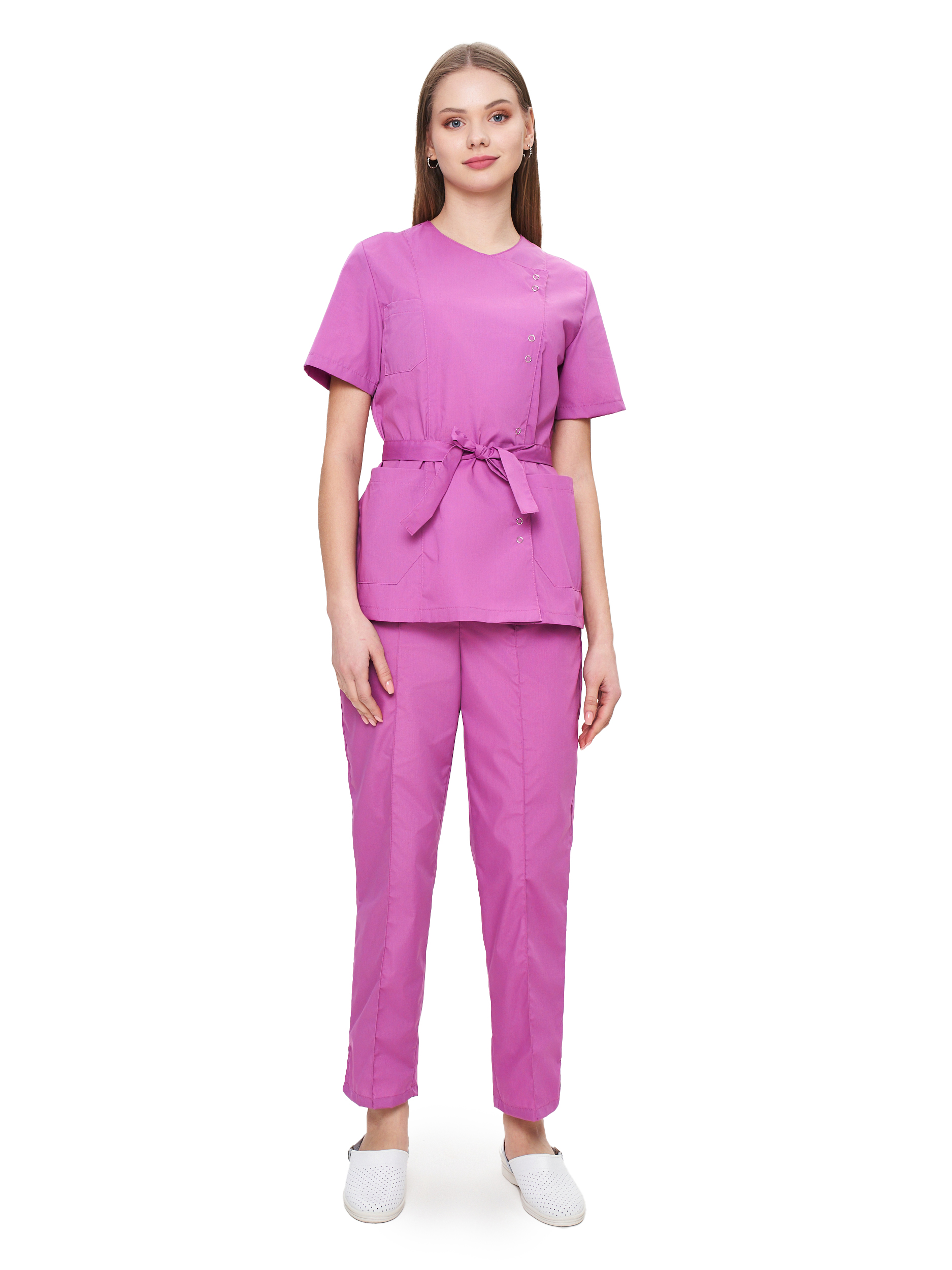 Современный, стильный, легкий и удобный женский костюм со свободной посадкой, рекомендован для сферы косметологии и работников медицинских учреждений из высококачественной смесовой ткани прекрасно переносят многократные стирки и выглядят презентабельно даже при длительных сроках эксплуатации. Широкий размерный ряд продукции позволит без труда подобрать костюм правильно по фигуре, в соответствии со спецификой профессии и с учетом индивидуальных требований сотрудника. Костюм женский «Юмелия» для косметологов и медработников прост в уходе, не мнется и быстро сохнет, а материал долгое время сохранит свой первоначальный яркий цвет. Костюм состоит из блузы и брюк приятного сиреневого цвета. Сегодня современная мода вмешивается не только в подиумные и уличные образы. Она диктует свои правила разным сферам жизни, в том числе в сфере косметологии и медицине. Костюм состоит из прочной смесовой ткани ТИСИ, отталкивающей различного рода загрязнения. Материал устойчив к пятнам и истиранию, тем самым косметологи и медработники всегда будут выглядеть опрятно и привлекательно.