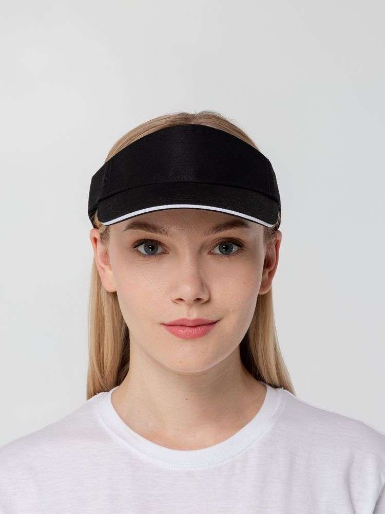 Козырек Active, черный с белым кантом