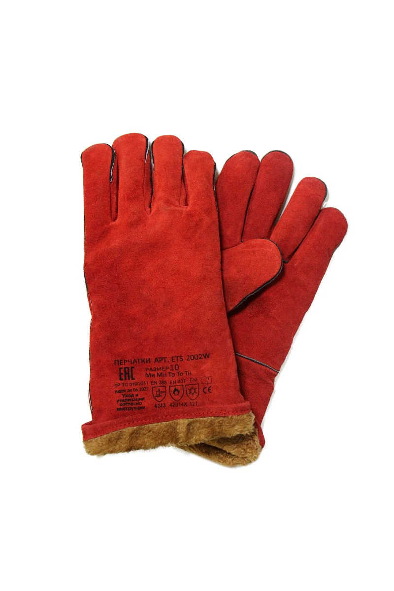 Краги спилковые сварщика, утепленные КРАСНЫЕ