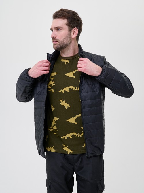 Куртка молодежная выполнена из материалов премиум качества. Спортивная куртка без капюшона средней длины обладает ветрозащитой, благодаря подкладке из полиэстера и утеплителю холлофайбер бомбер теплый надежно защищен от холода, ветра и дождя.