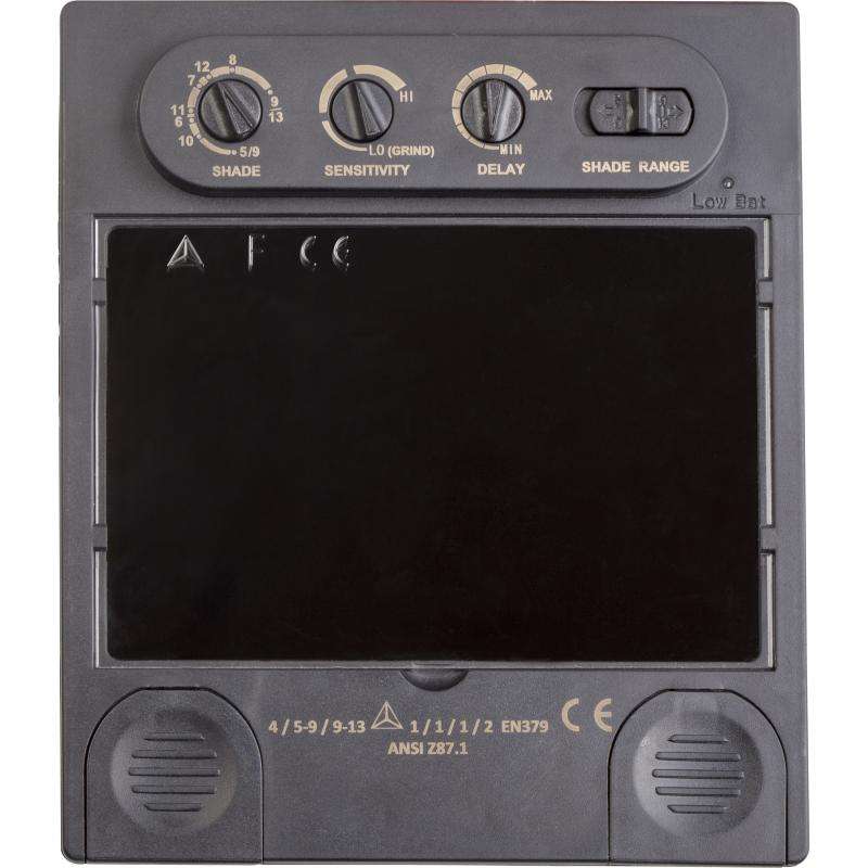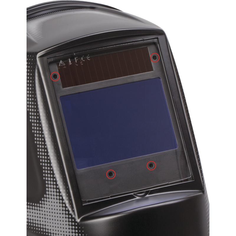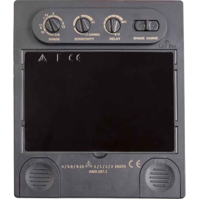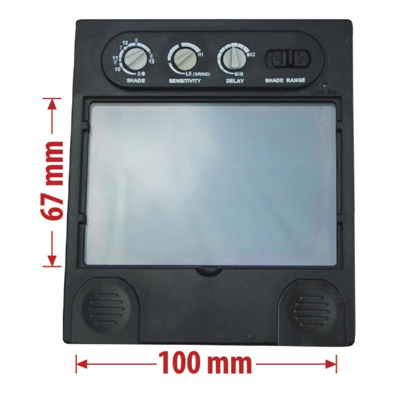 Маска сварщика (электросварка MIG, MAG, TIG) с оптоэлектронным фильтром автоматического затемнения. Материал маски – полипропилен. Внутренняя оснастка из поликарбоната, с удобным креплением с храповиком и потовпитывающей вставкой, с большим количеством регулировок: наклона щитка, расстояния до лица, размера оголовья. Маска обеспечивает полную защиту головы и глаз от ультрафиолетовых и инфракрасных лучей, излучаемых во время сварочных работ. Размер светофильтра: 100х67 мм. Оптический класс - 1 (высший); класс рассеяния света - 1; коэффициент пропускания света – 1; угловая зависимость коэффициента пропускания света - 2. Светофильтр позволяет настраивать три параметра: чувствительность, степень затемнения и время срабатывания фильтра. Чувствительность регулируется в зависимости от уровня освещённости при различных способах сварки (LOW-HI). Степень затемнения разделена на две группы: DIN5 – DIN9 и DIN9 – DIN13, в осветленном состоянии – DIN4. Время затемнения – 0,00004 с, время осветления – от 0,15 до 0,8 с. На светофильтре расположены 4 оптических датчика. Светофильтр работает от двух литиевых батарей, имеется индикатор разряда батареи. Маска может использоваться при большинстве видов сварочных работ (электросварка MIG, MAG, TIG; не может использоваться при газовой резке и лазерной сварке).