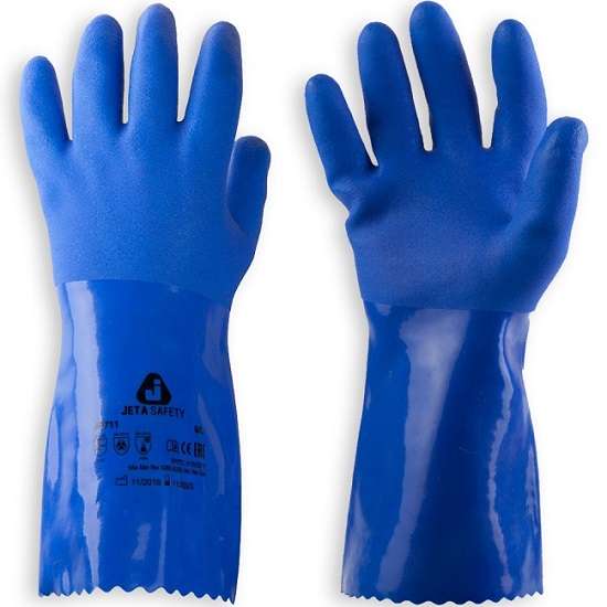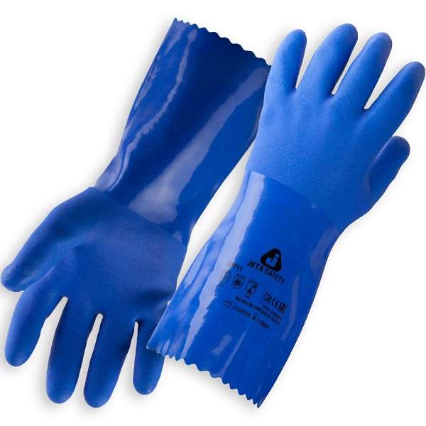 Перчатки защитные химические с ПВХ покрытием JP711 Jeta Safety синие