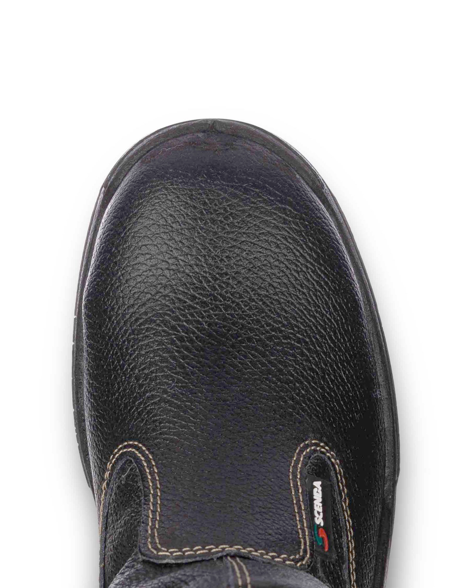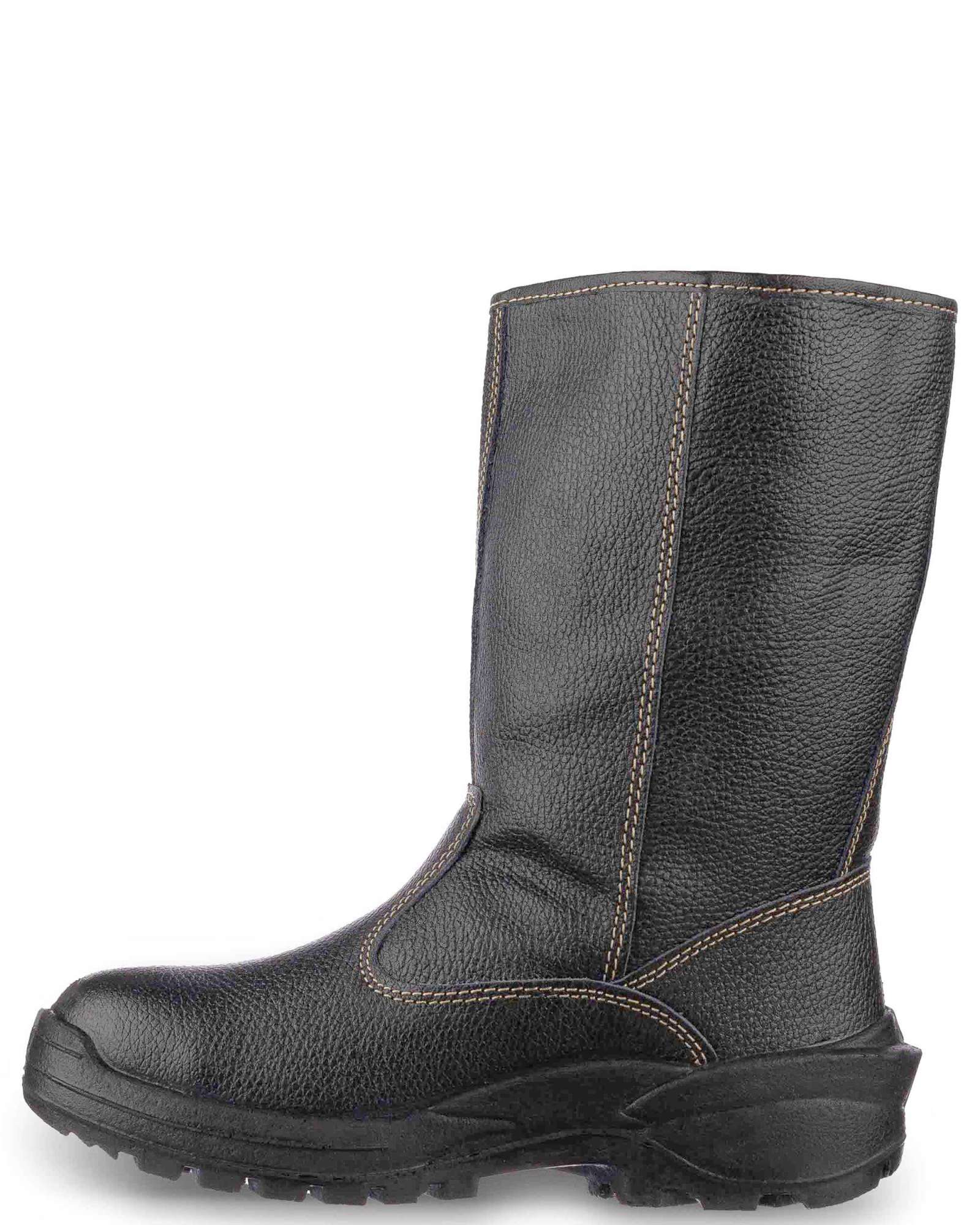- Верх обуви выполнен из натуральной кожи толщиной 1,8–2,0 мм, специально адаптированной для условий рабочей среды.