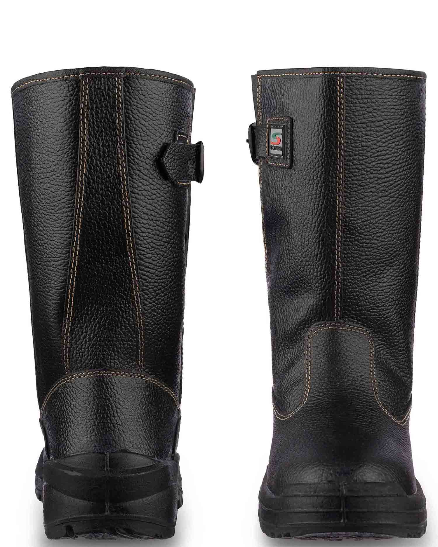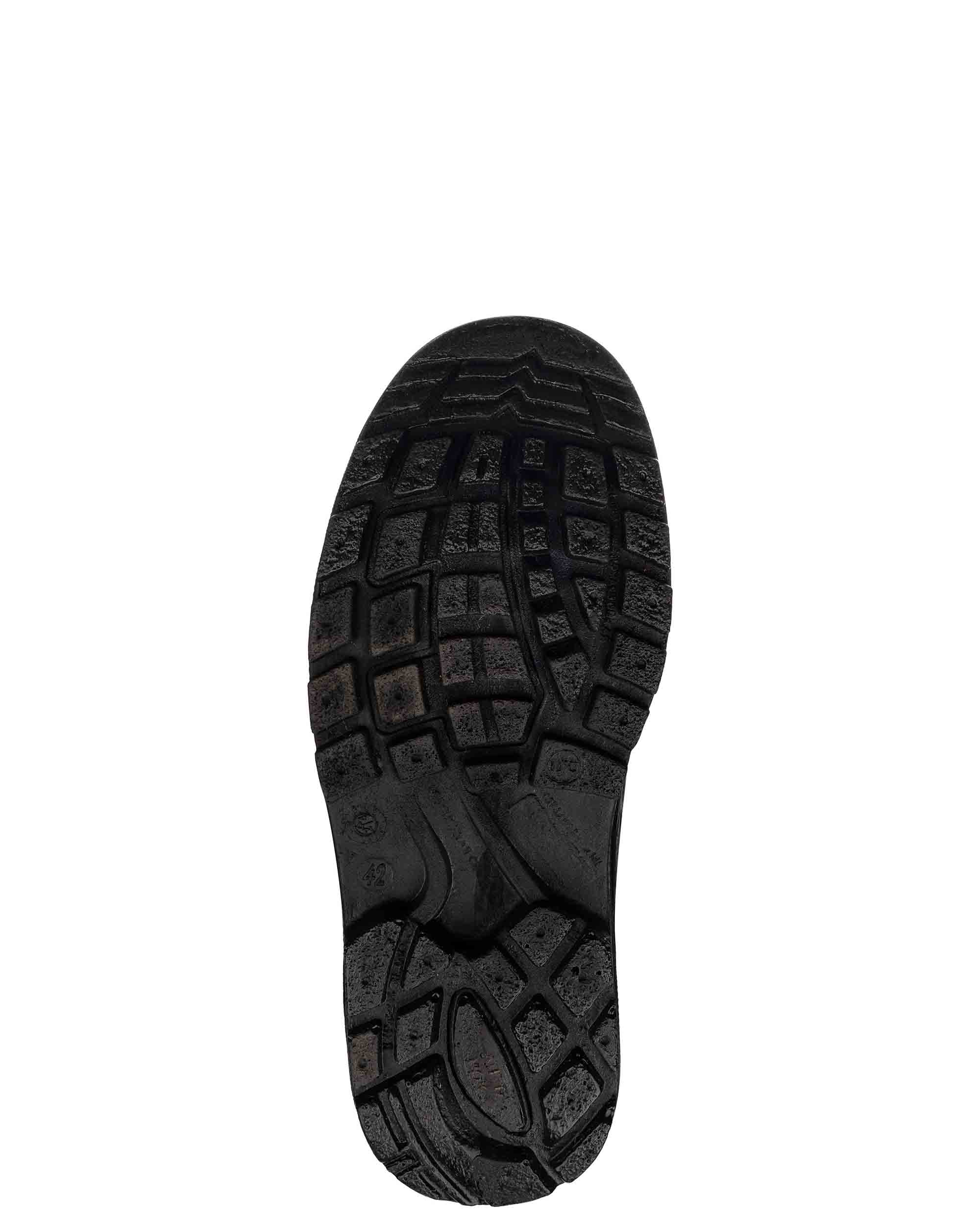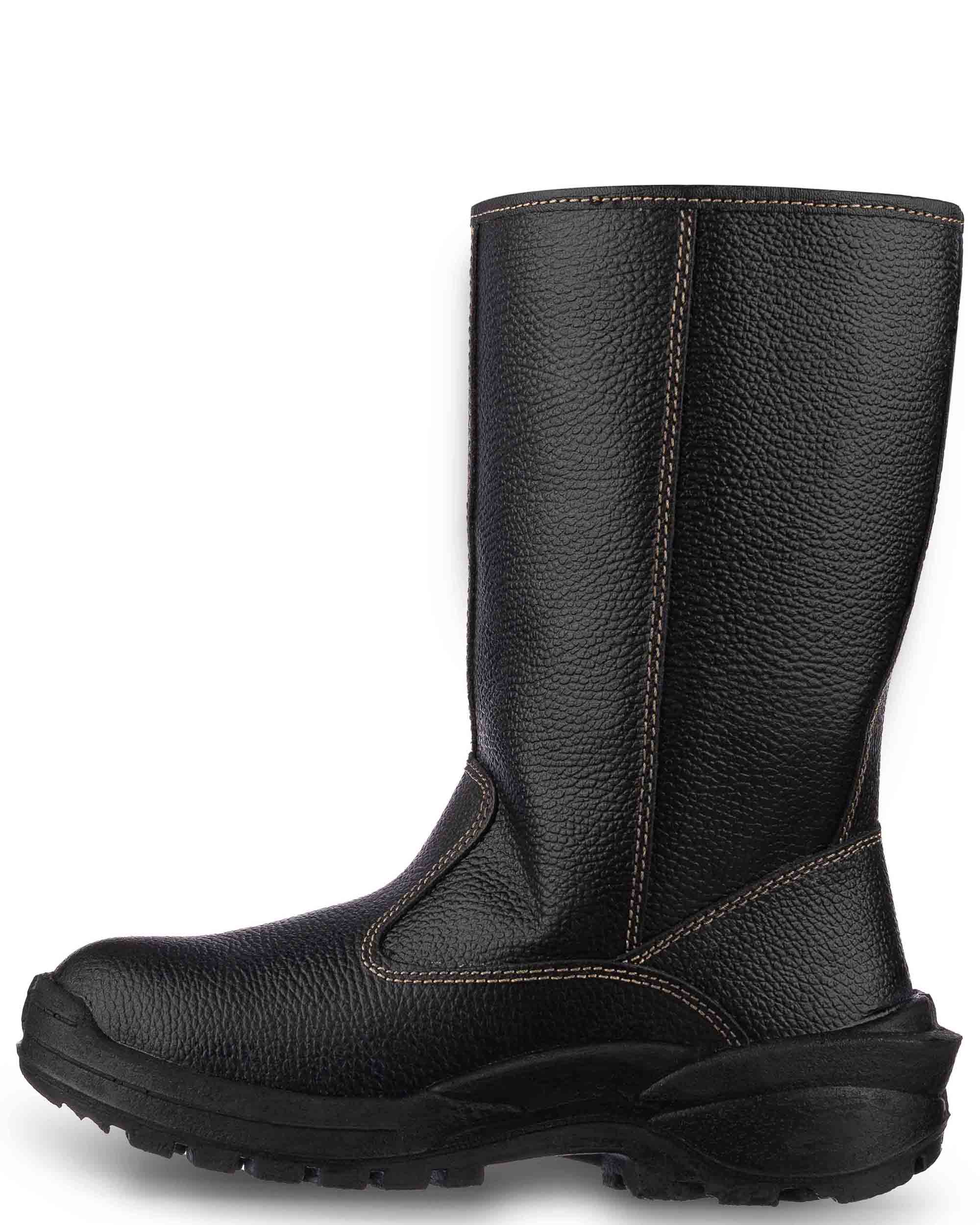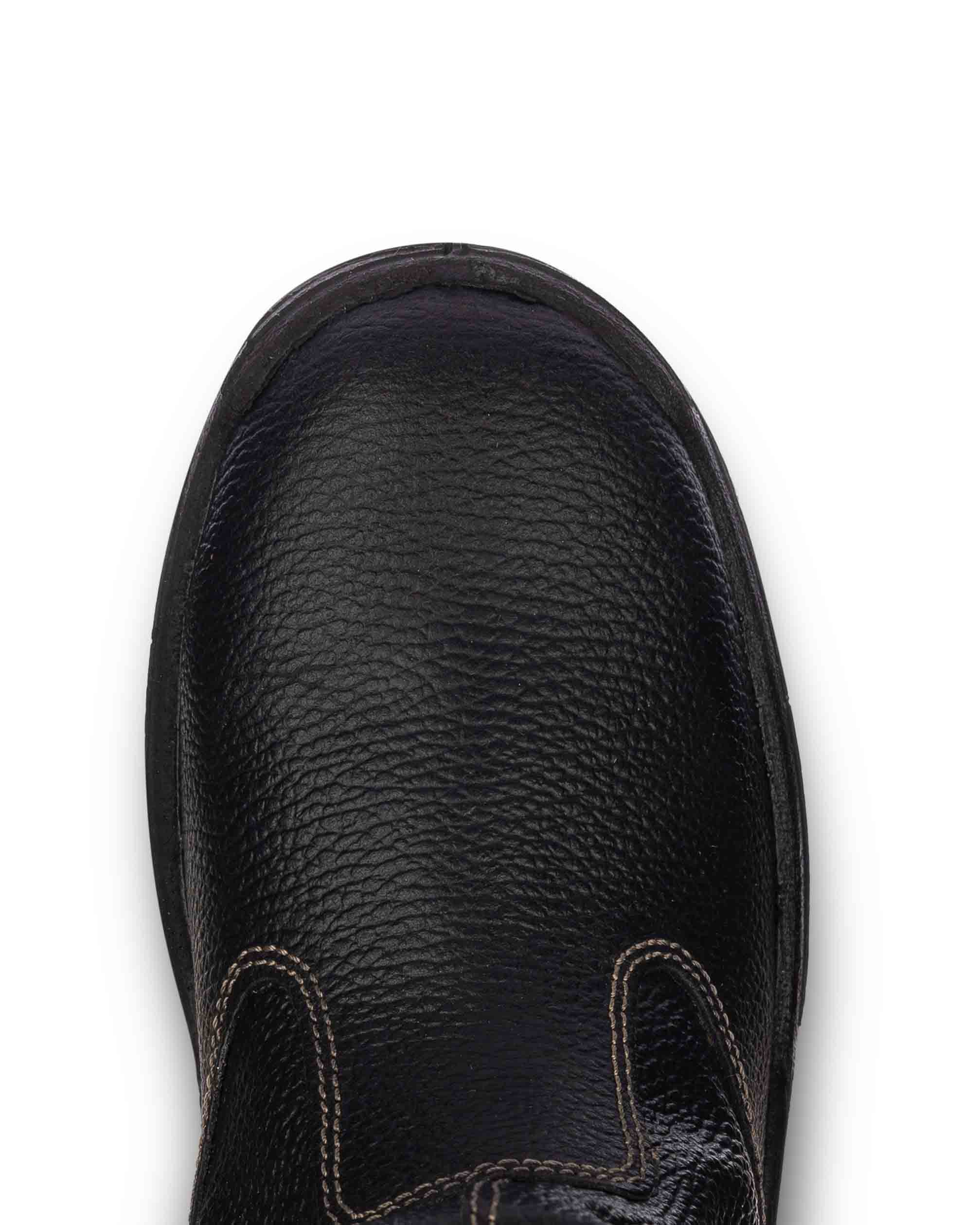 - Верх обуви выполнен из натуральной кожи толщиной 1,8–2,0 мм, специально адаптированной для условий рабочей среды.