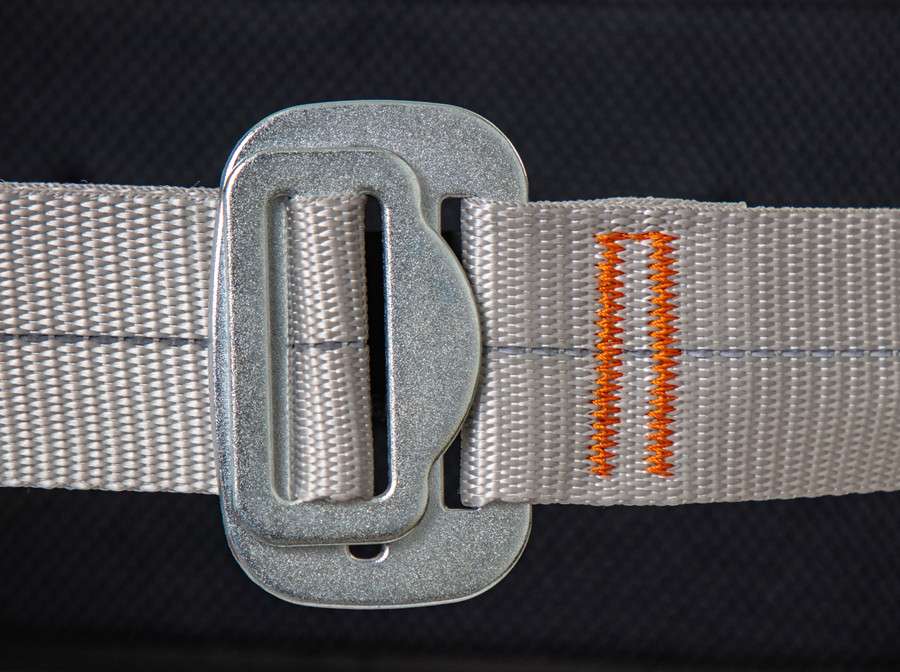 - фирменная асимметричная конструкция грудной страховочной точки, состоящая из фиксированного полукольца и ответной замыкающей части, исключает необходимость приобретения дополнительного карабина для блокировки точки А;
