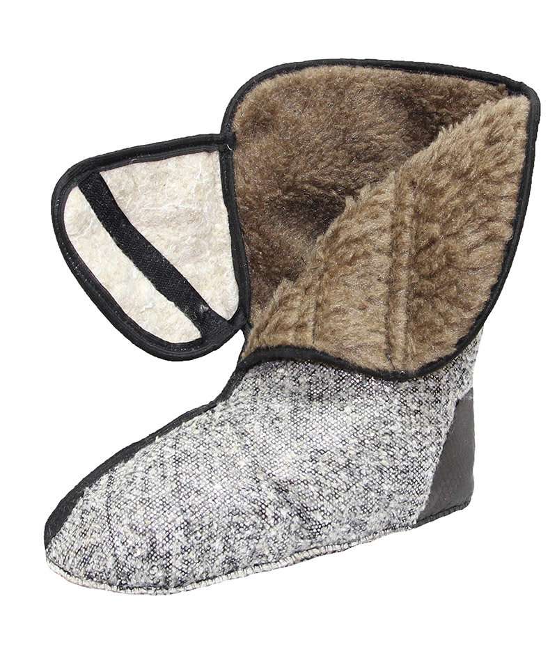 Первый (внутренний) слой - Регенерированный мех (70% полиэстер/30% шерсть) - впитывает и отводит влагу, сохраняет тепло, стоек к истиранию.