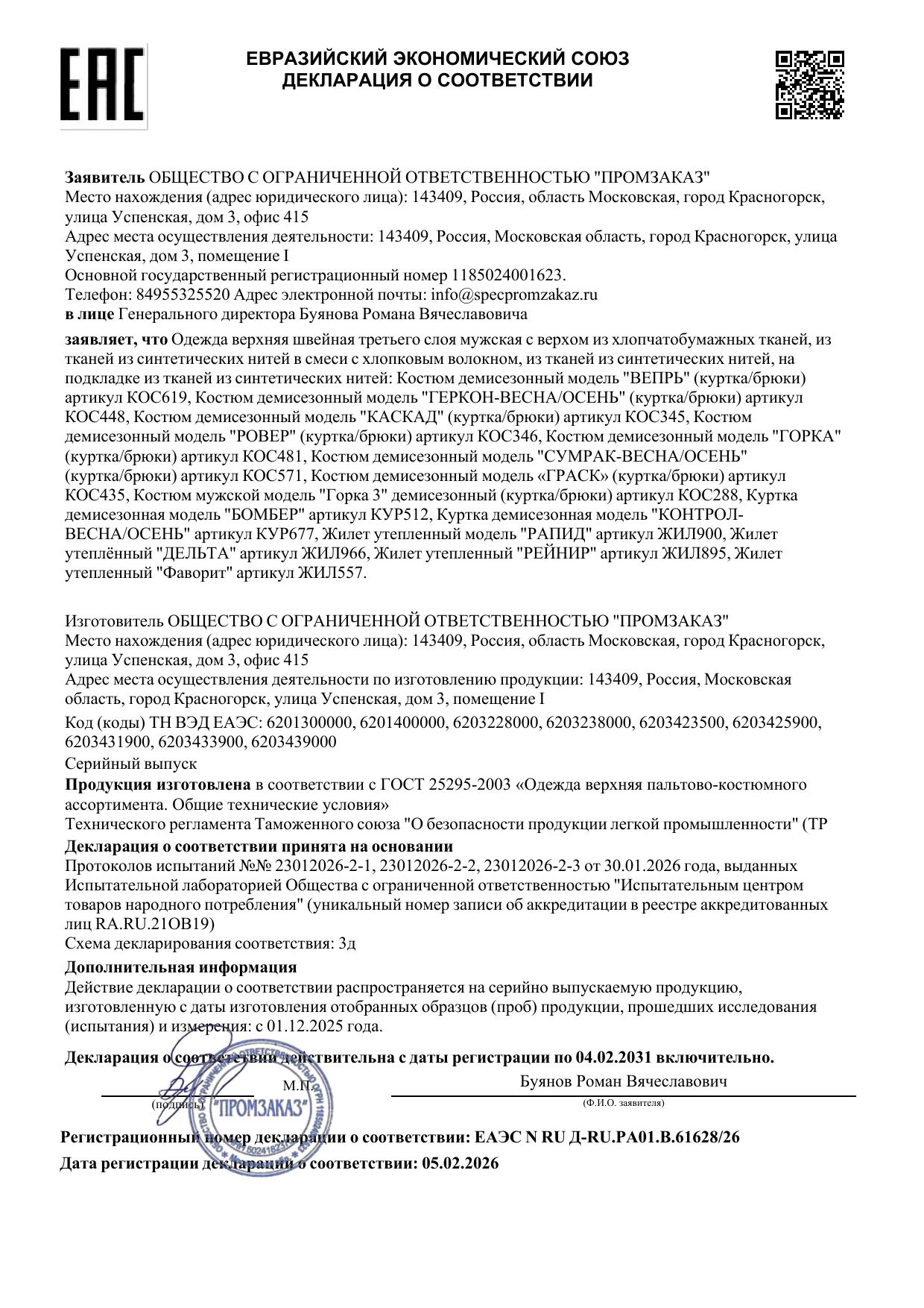 - Декларация о соответствии №RU Д-RU.РА01.В.61628/26 с 05.02.2026 по 04.02.2031 - 1 стр.
